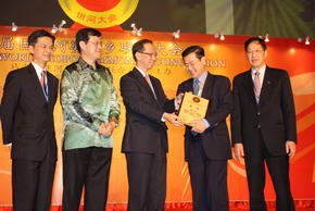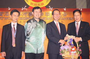 “在和而不同的情况下,我们坚持和发展族群间和谐共存的精神。这值得我们籍首届世界河婆同乡联谊大会的平台向全世界乡亲展示一切。 ” 也是马华总会长的翁诗杰,他在“世界河婆之夜晚宴”上致词时说,虽然各国华裔分属不同国籍,深受不同社会文化的熏陶,但我们毕竟 是炎黄子孙,以不同的方式认祖归宗,是无可厚非的。 “这种血缘上的认同,不应该成为任何人质疑我们对各自居住国效忠的口舌。”
